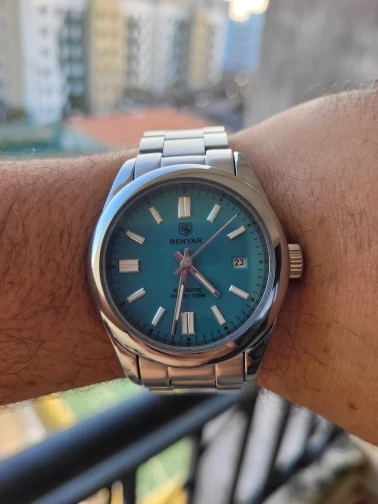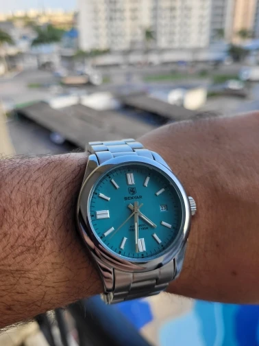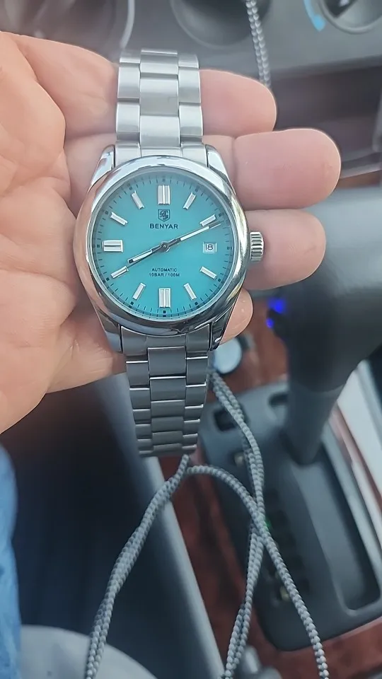 The BENYAR men’s automatic mechanical watch combines sporty design with luxury features. Crafted from stainless steel, it offers luminous hands, a complete calendar, and 10-bar (100m) water resistance suitable for swimming and diving. Powered by a reliable Seagull ST6 movement, this watch is durable, stylish, and ideal for casual, business, or sporty occasions. Each set includes a gift box, cleaning cloth, warranty card, and instructions, making it a perfect gift choice.