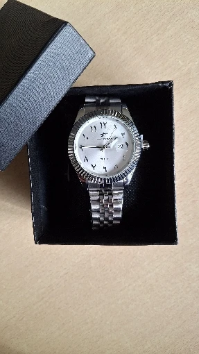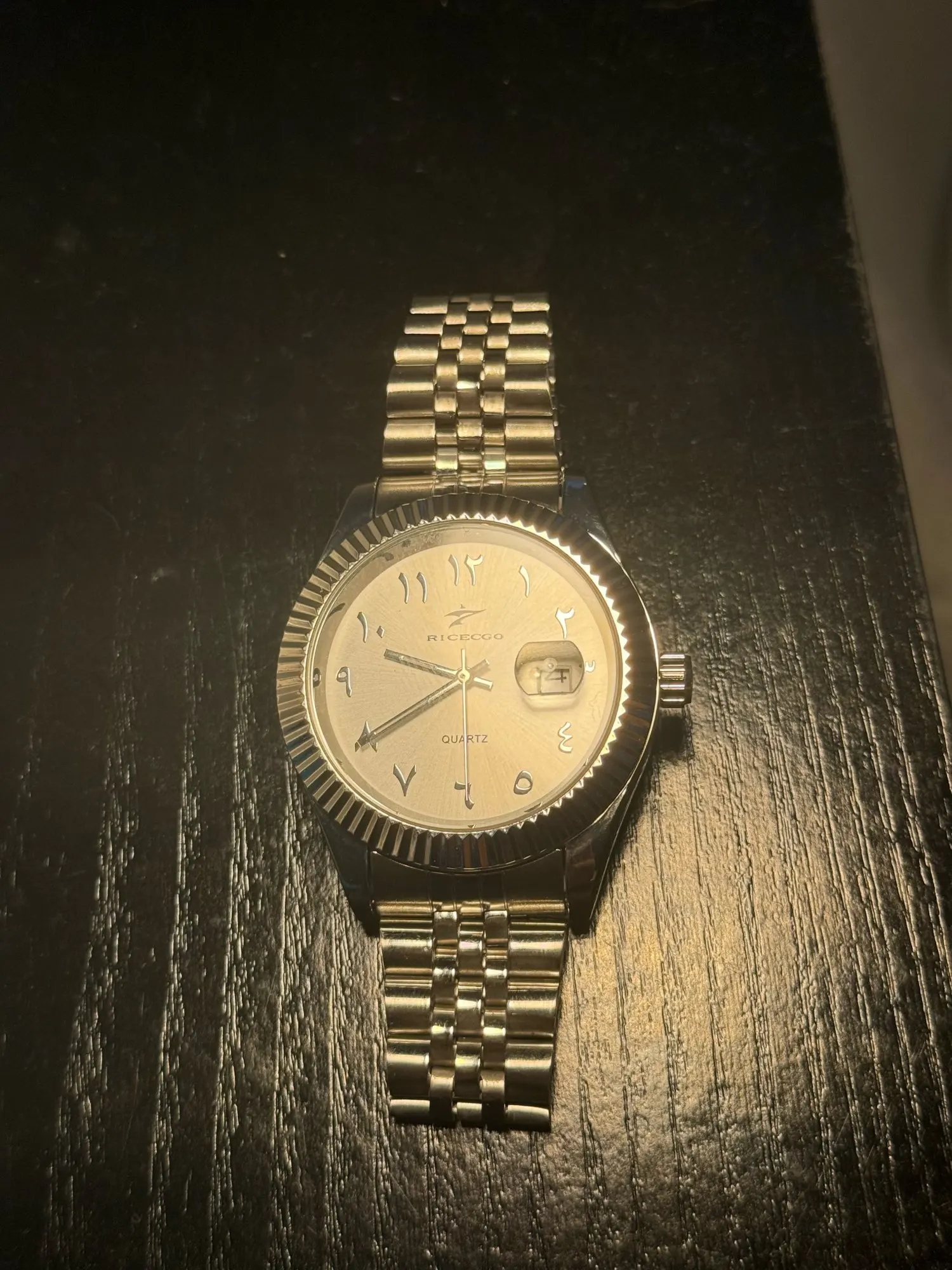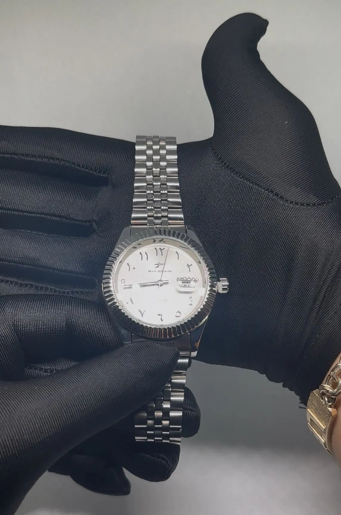 The RICECGO menβs quartz watch combines high-end luxury with casual and business style. Featuring a stainless steel band, alloy case, and complete calendar display, it delivers elegance and practicality. Its classic round dial with Arabic numeral markers makes it suitable for everyday wear or formal occasions, offering a sophisticated timepiece for style-conscious men.
