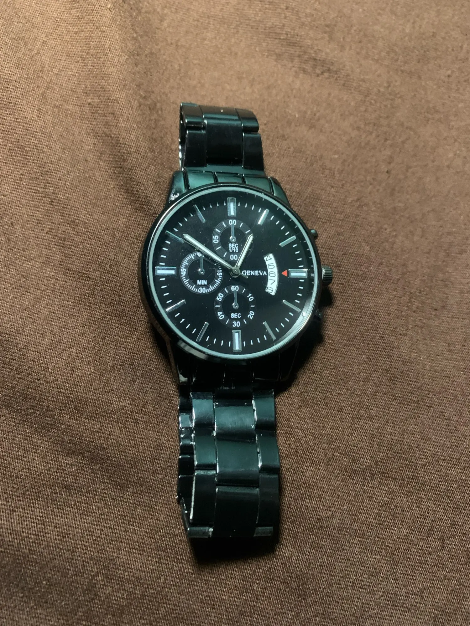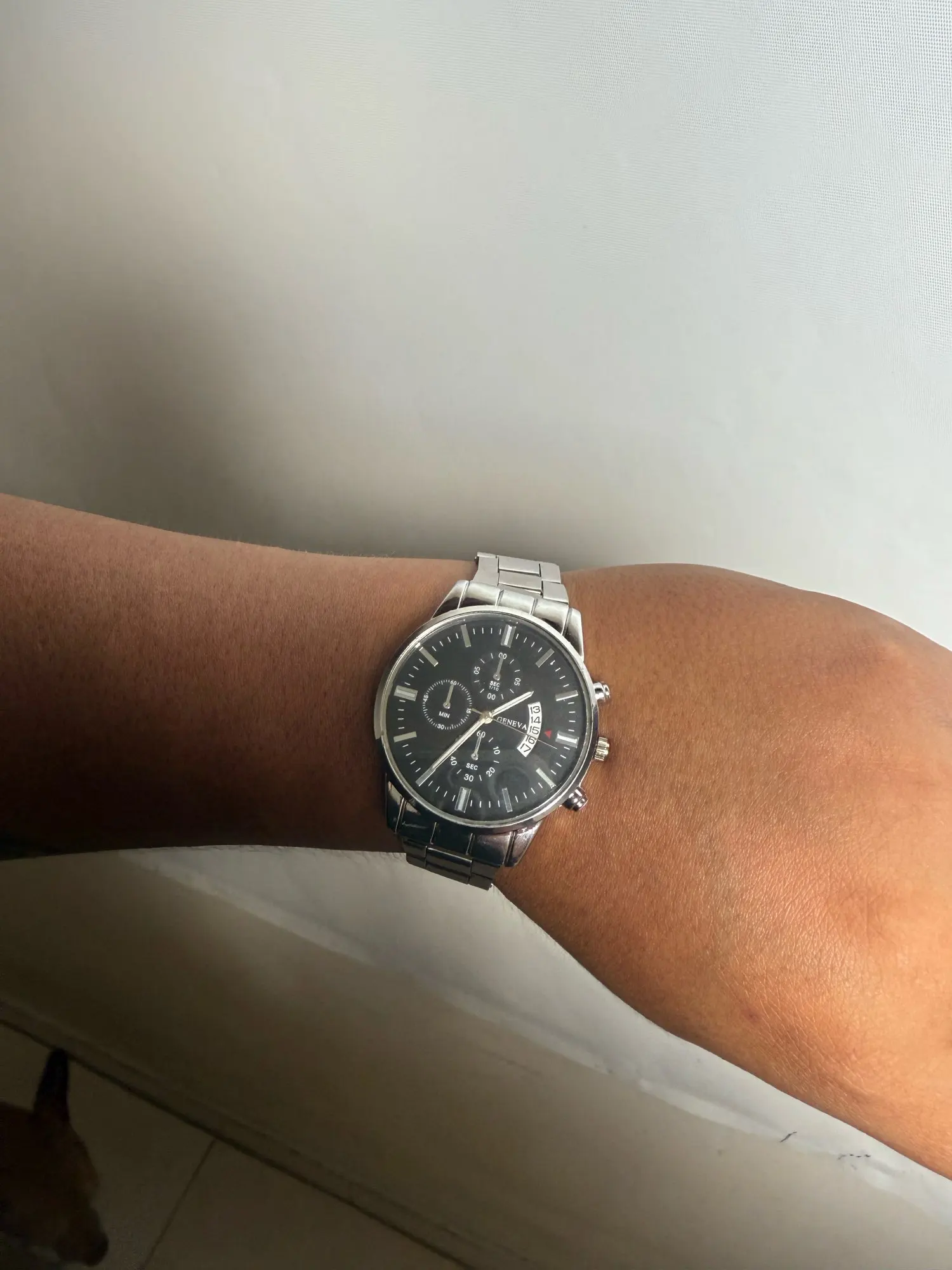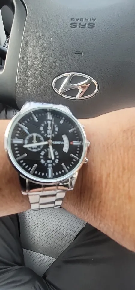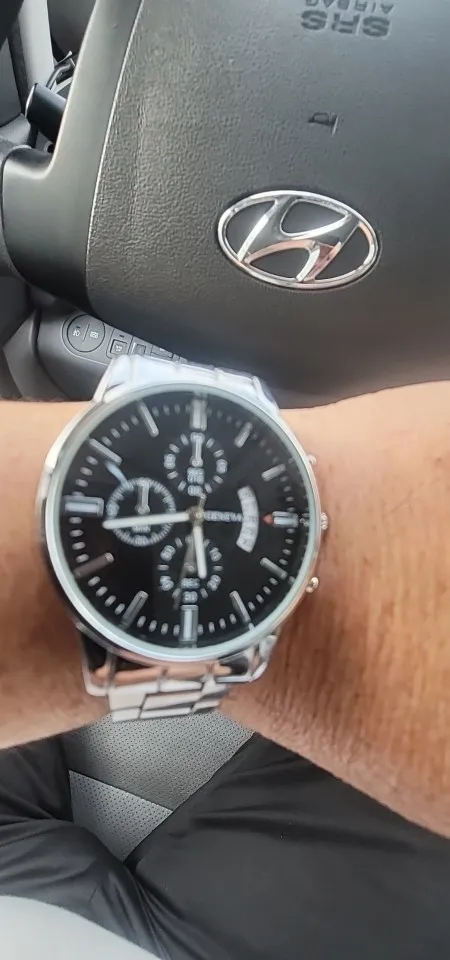 The RUNERR men’s quartz watch combines luxury and practicality with a sleek stainless steel band and alloy round case. Featuring a complete calendar and a scratch-resistant Hardlex dial window, it ensures accurate timekeeping and a stylish look for business or casual occasions. Note: subdials and chronograph elements are decorative only.