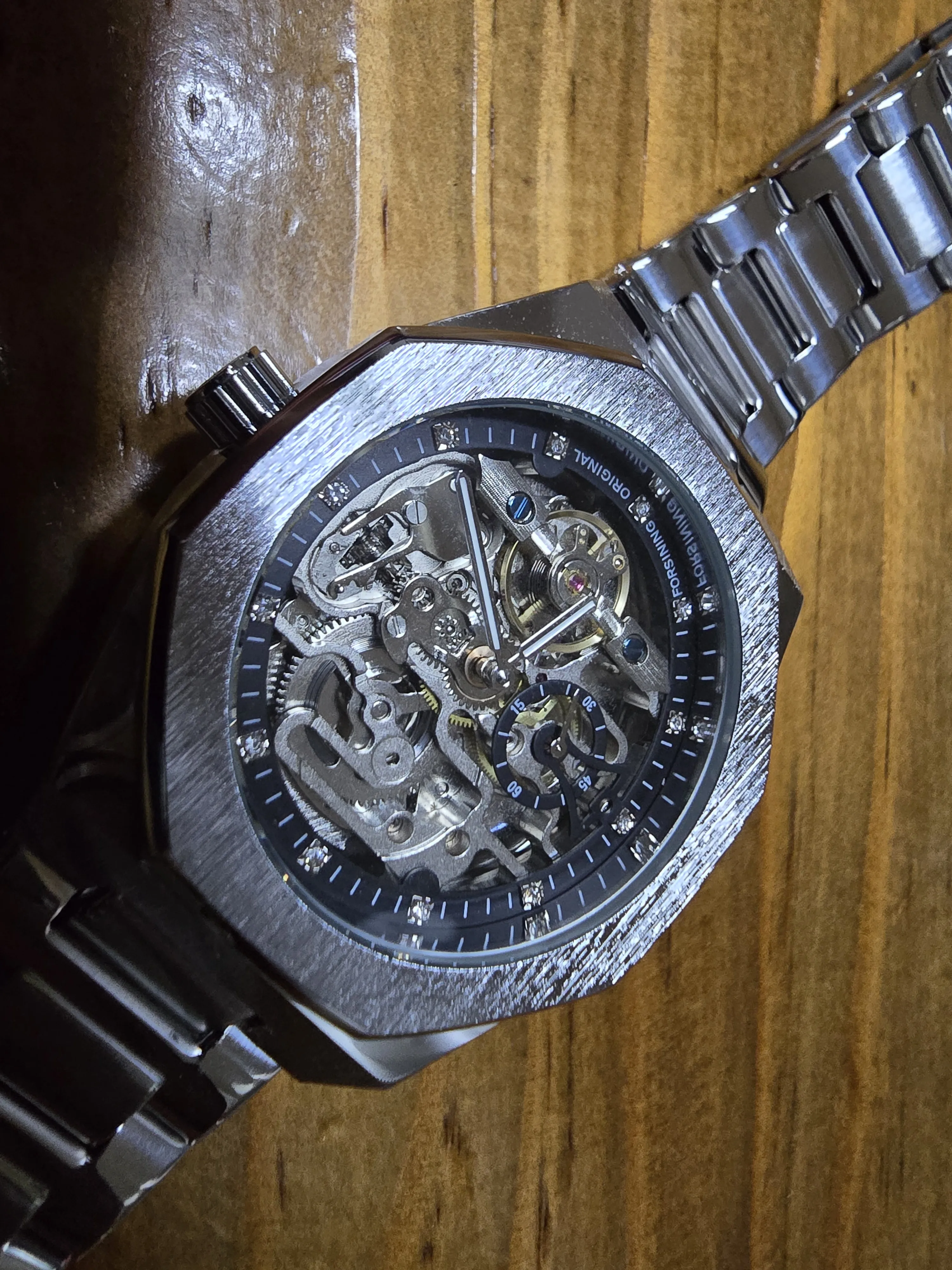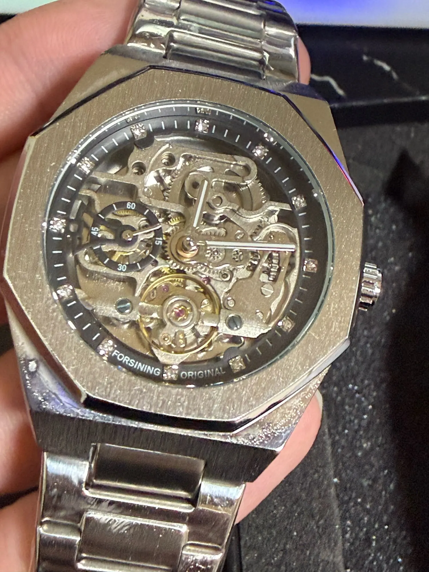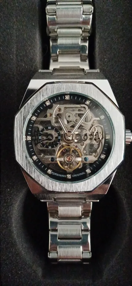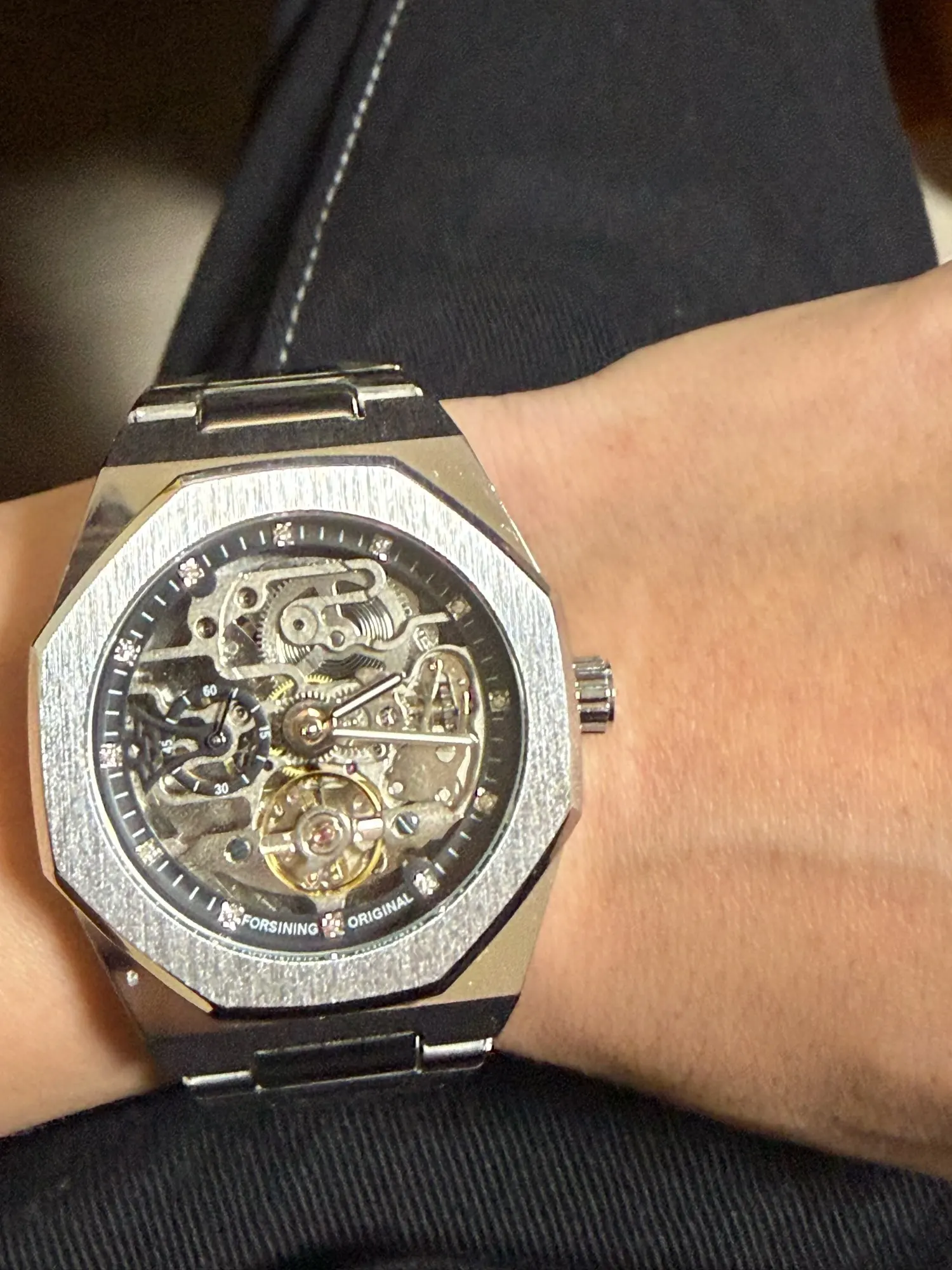 The Forsining men’s automatic mechanical watch features a unique irregular case with a 3D diamond skeleton dial and luminous hands. Crafted from stainless steel with 3-bar water resistance, it combines elegance, durability, and precision. Ideal for fashion-forward men, this watch is suitable for casual or formal occasions and makes a perfect gift for holidays or special celebrations.