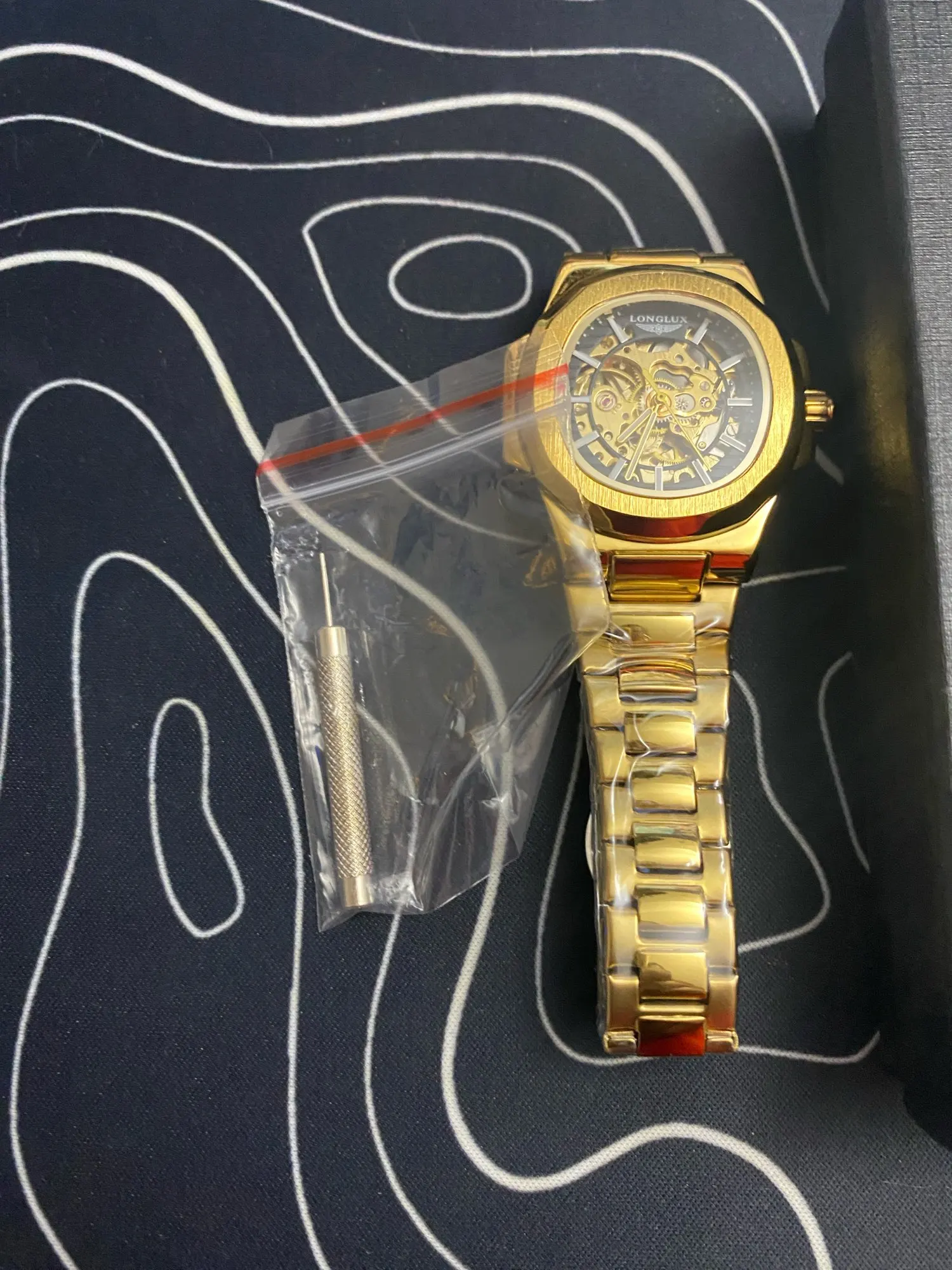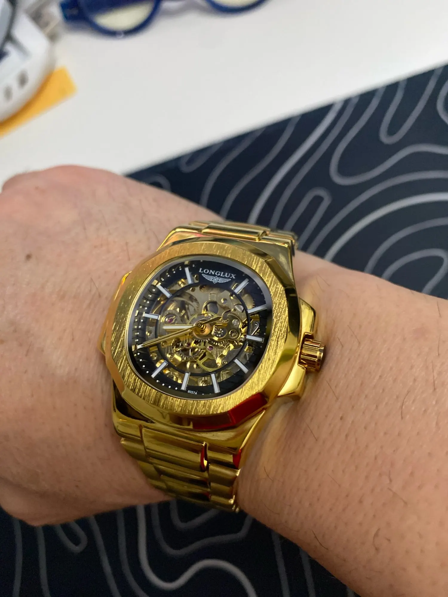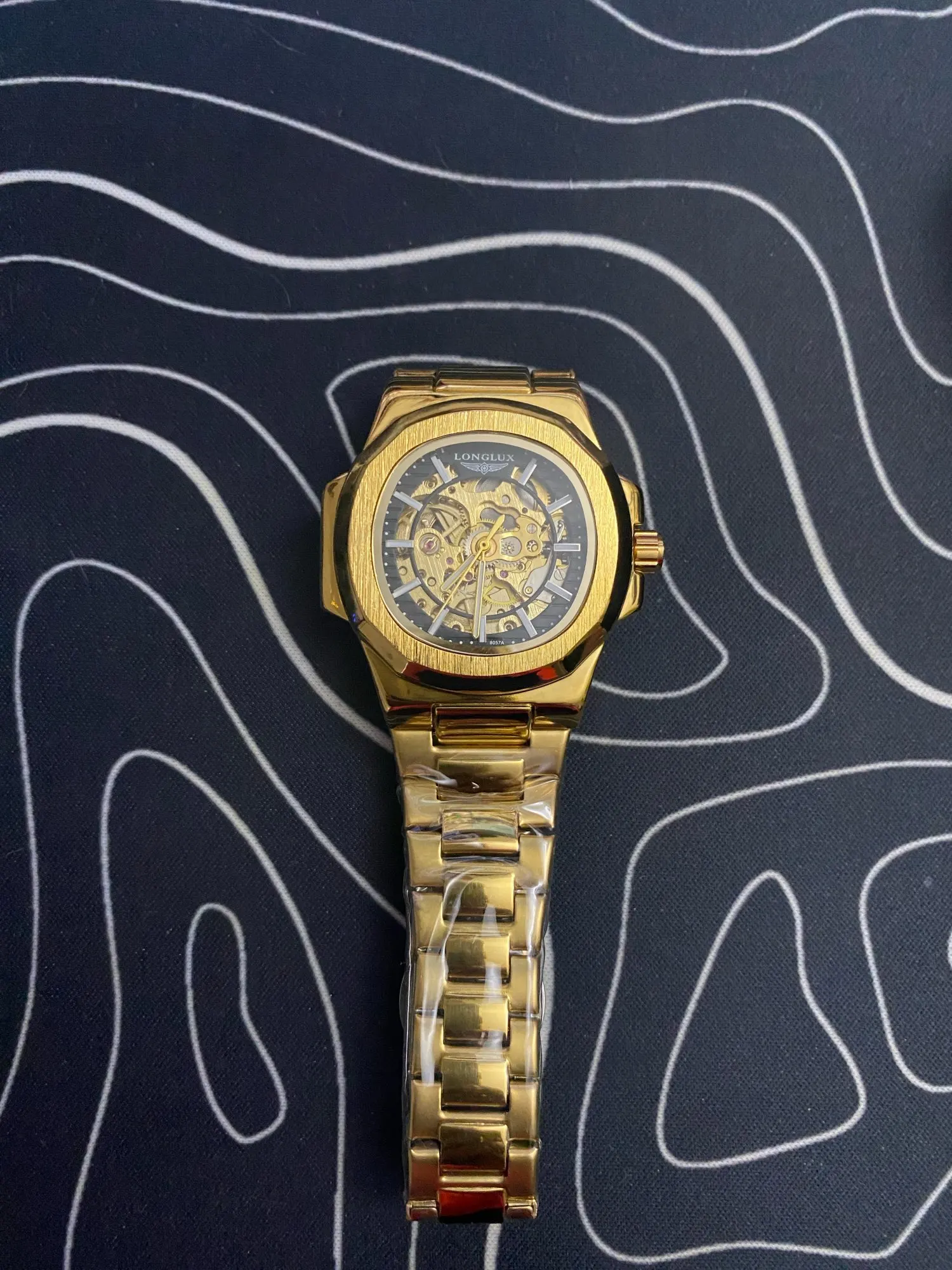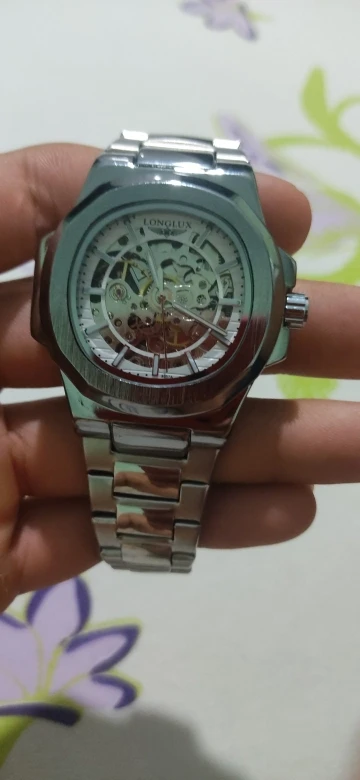 The LONGLUX men’s automatic mechanical watch features a unique irregular-shaped alloy case and stainless steel band for a bold, luxurious look. With a skeleton dial and 3-bar water resistance, it combines style and functionality, making it ideal for business or casual occasions. This timepiece offers precision craftsmanship and a sophisticated design suitable as a gift or for personal collection.