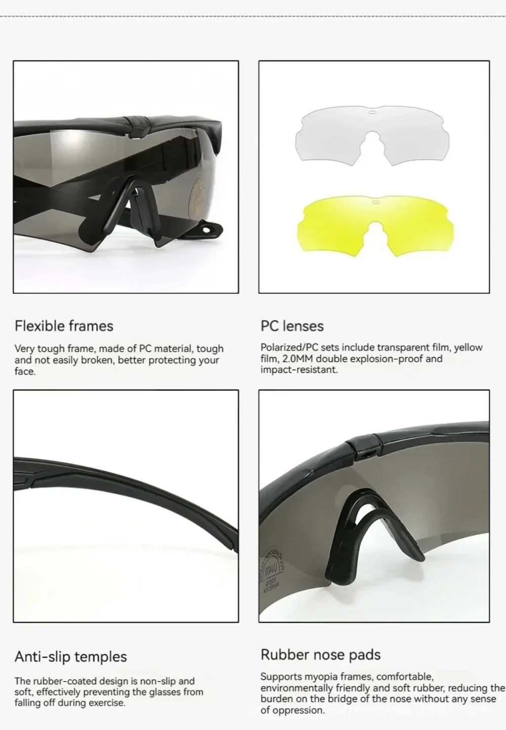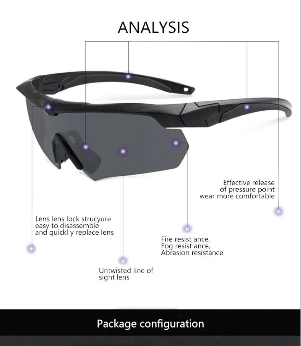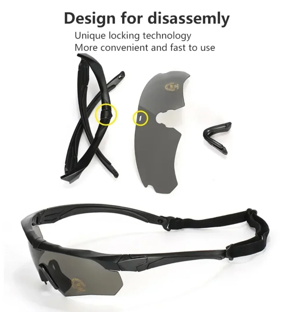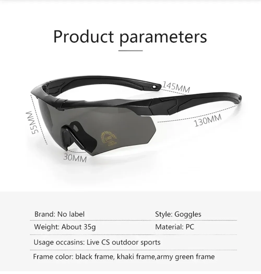 These military tactical goggles are designed for airsoft, shooting, motocross, and outdoor activities. Featuring reinforced PC safety lenses with UV protection, they are impact-resistant and explosion-proof. The goggles include a detachable design, anti-slip headwear, and double nose support for comfort, making them ideal for mountaineering, cycling, camping, and other high-intensity sports.