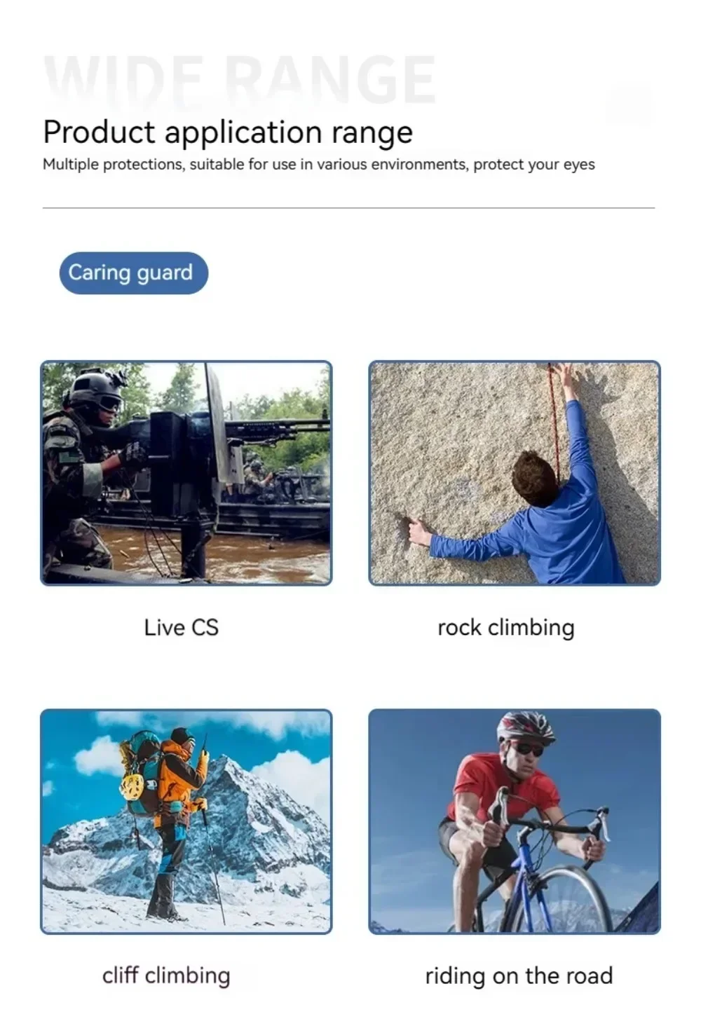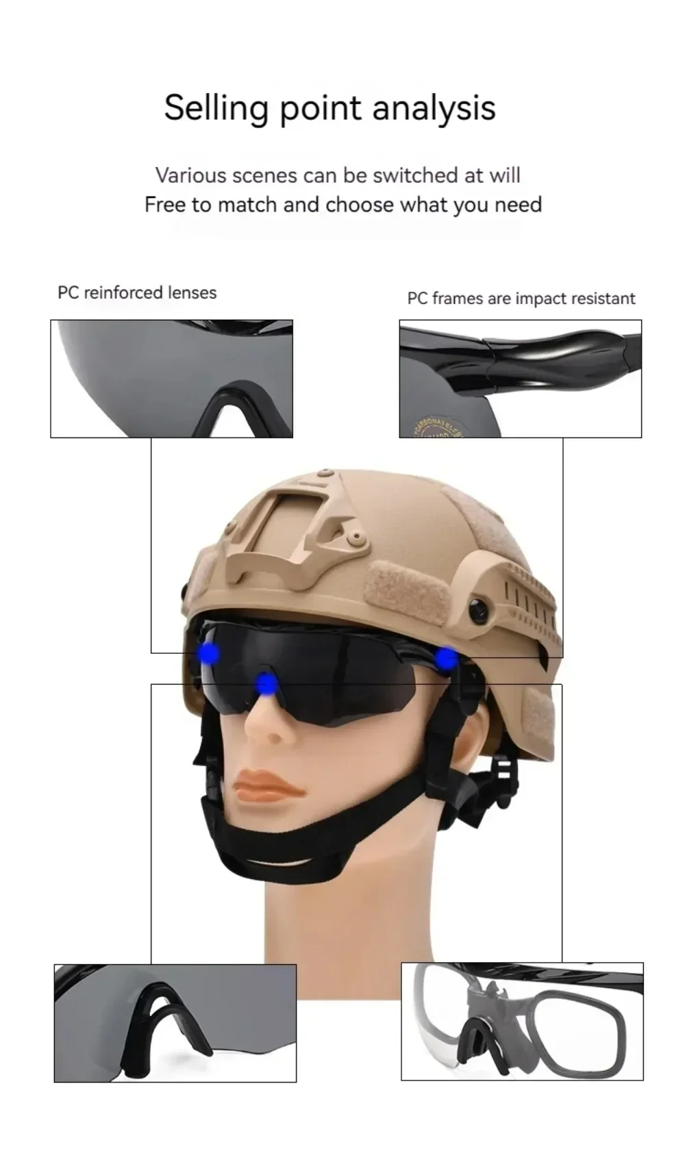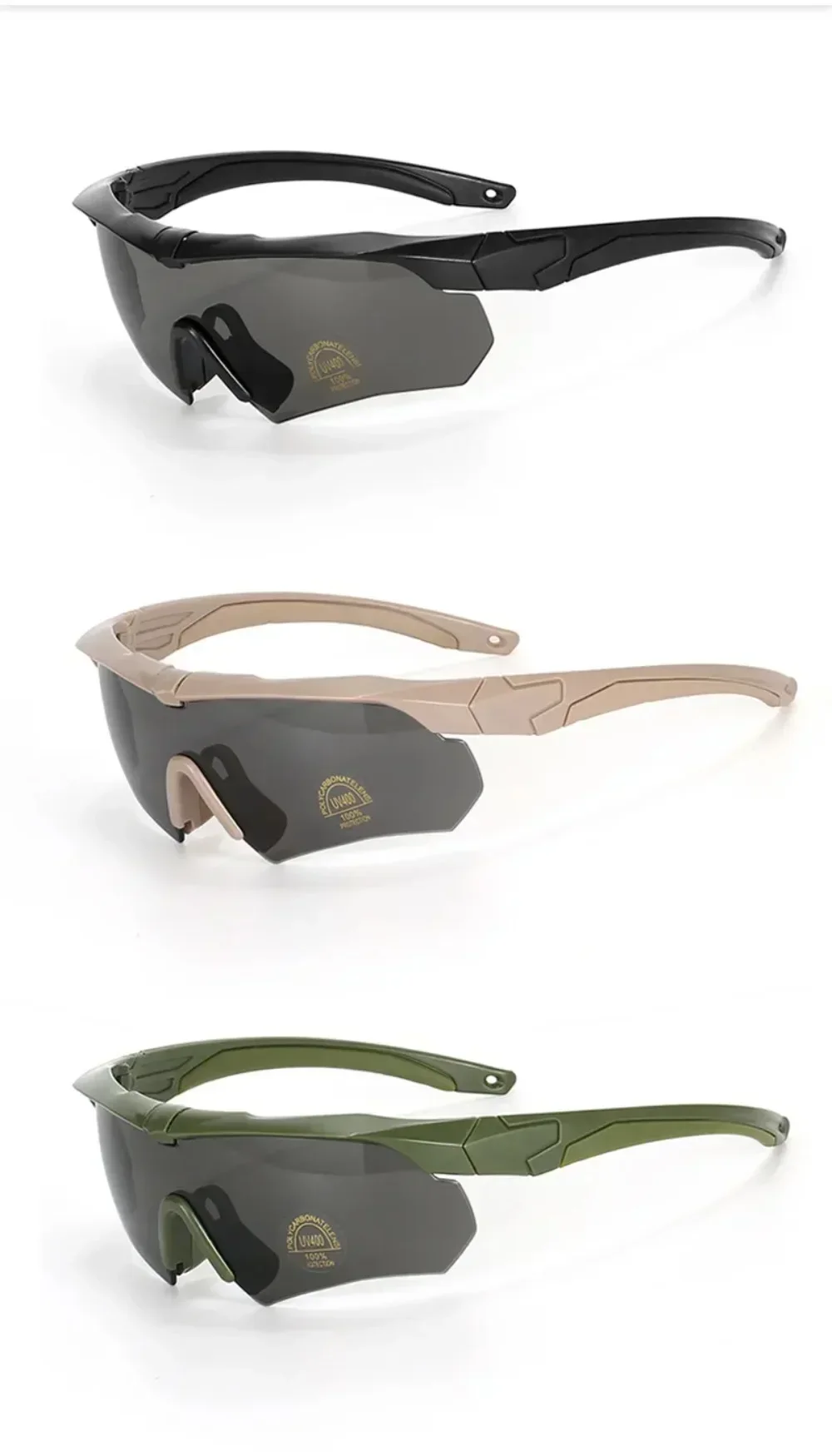 These military tactical goggles are designed for airsoft, shooting, motocross, and outdoor activities. Featuring reinforced PC safety lenses with UV protection, they are impact-resistant and explosion-proof. The goggles include a detachable design, anti-slip headwear, and double nose support for comfort, making them ideal for mountaineering, cycling, camping, and other high-intensity sports.