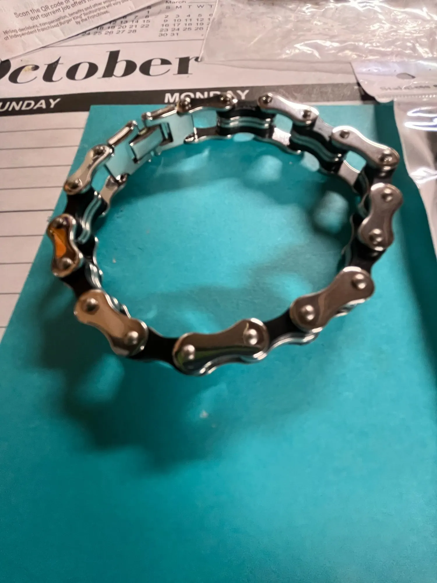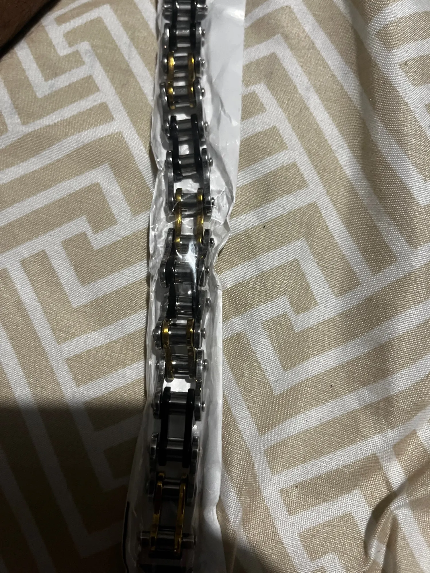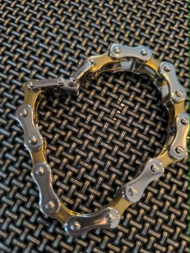 This Punk Rock bracelet is crafted from durable 316L stainless steel, featuring a bold bike chain-inspired design that exudes edgy style. Its hidden safety clasp ensures a secure fit while maintaining a sleek, polished look.