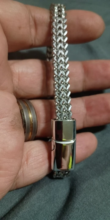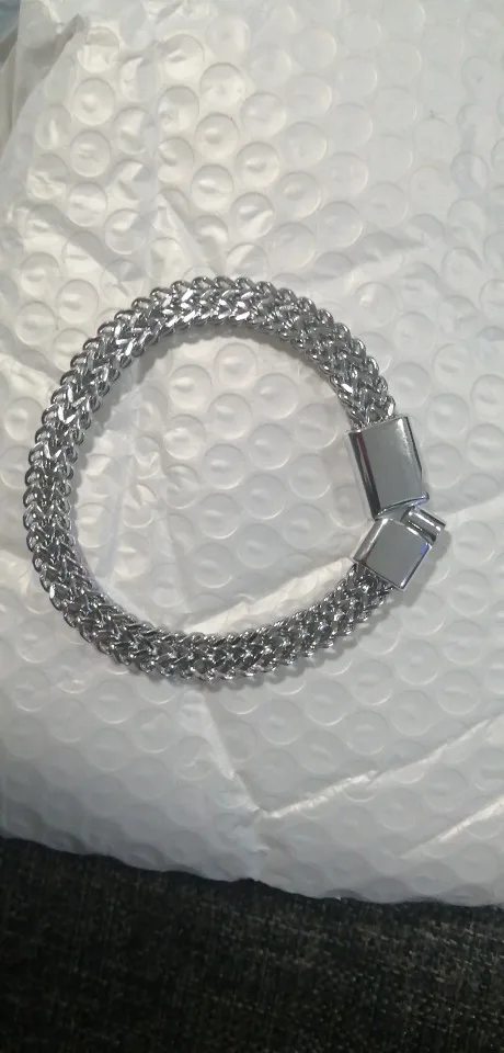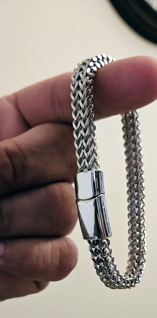 This stainless steel magnetic bracelet features a braided double-row design with a fish scale pattern, combining edgy style with modern craftsmanship. The hidden-safety magnetic clasp ensures a secure fit while adding a sleek, polished look.